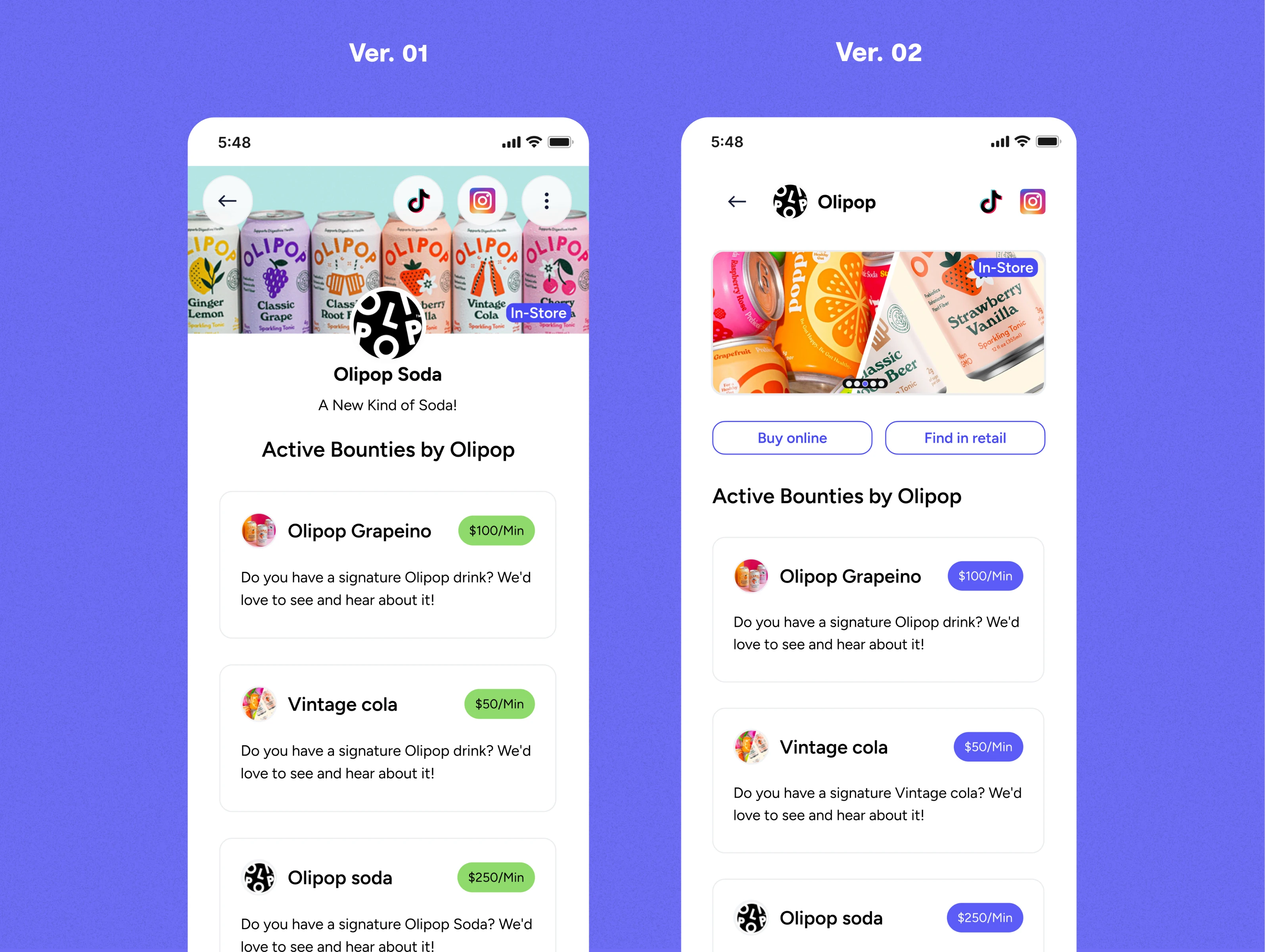 Brand Store — Peak-End Rule People remember experiences by their peak moment and their ending — nothing else. So we designed each brand page to open with a bold hero image and close with all active bounties clearly laid out. The entry and the reveal were engineered to be the two strongest emotional moments in the browse experience.